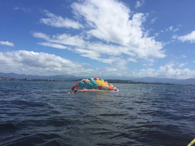 拉我们回来的那个机器发生了一点意外~要把我们降落在大海,我俩就在大海中漂浮了~哈哈~好好地感受了一下海浪(ps我和闺蜜都不会游泳,但是并没有觉得很害怕)我们也觉得这是难得的经历~哈哈