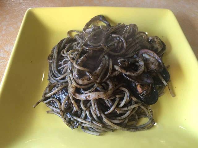 墨汁海鲜面,料很足~很多海鲜(ps吃到后面!!居然发现有钢丝 洗碗的那种!!无言)把服务员叫来,告诉他I saw something special in it.!!然后他把东西给我收走了...