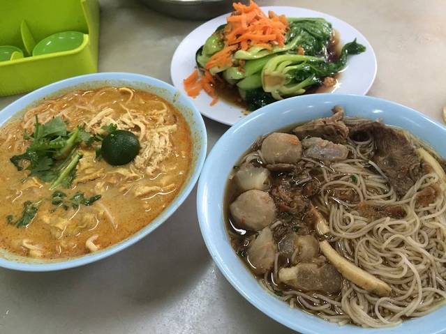 点了两杯酸梅柠檬冰,叻沙,牛杂粉,一个菜(ps觉得这里的菜不好吃~额~太爽口了....)