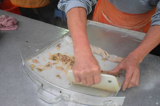 【拼盘】因为早就听说一天要吃好几顿,机智的小伙伴就带上了分食的剪刀,把每个粿都分成小块,每种味道大家都能尝尝。不过吃多了都是腻啊。
