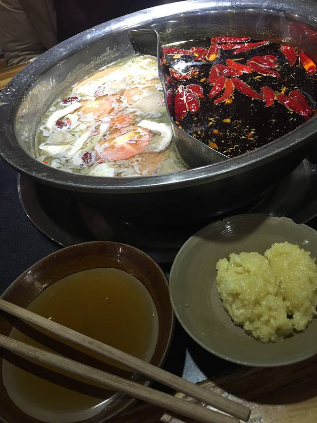 佩姐老火锅~并且蘸料是当地独有的火锅油和蒜蓉!我只想说,给宝宝一碟子芝麻酱好么🙄但是蘸酱是好吃的!越吃越有味道!反而更容易淡化辣的刺激~