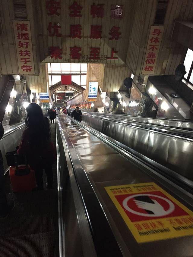 大扶梯在火车站一片,一个人一趟需要两块钱,看到要掏钱的时候我就忍不住!笑!了!迷之笑点!我笑点低怪我喽😊