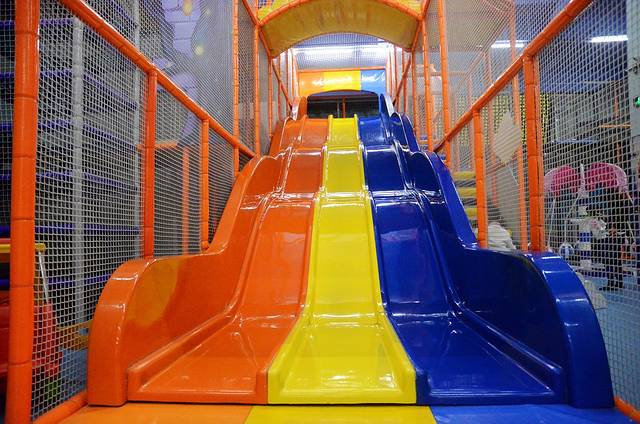我们第一站是欢乐淘气堡,乐园分为两个区域,5岁以下孩子有小型淘气堡,较大孩子的四层活动区域有三款刺激程度不同的滑梯。乐园在滑梯旁都安排了工作人员对孩子进行指导,这点还是很赞的~