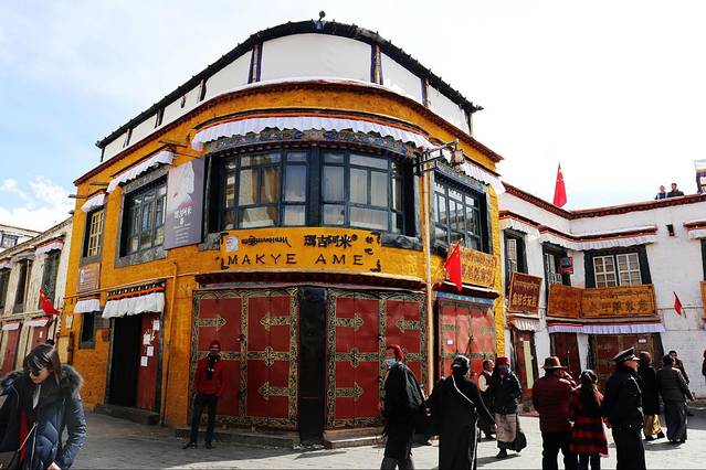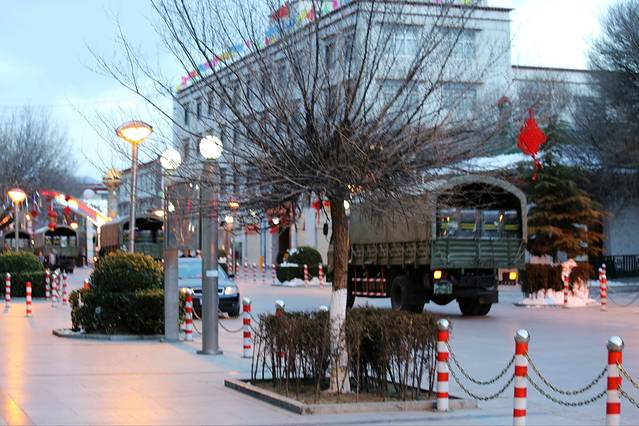 由于当天朝拜人员已开始排队,大昭寺周边对所有车辆全部封闭。回族的车夫借口把我们放在北京东路的一个路口,人生地不熟的我们凭借着导航拉着行李走了近700米才到达酒店。