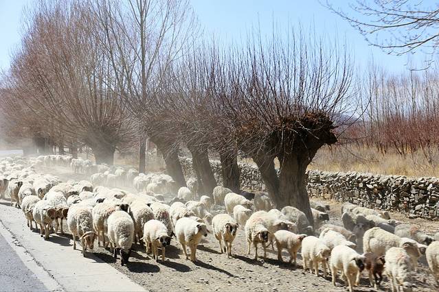 羊群挡住了前行的道路,羊蹄扬起灰尘营造出一幅生动的画面!祝大家羊年大吉!