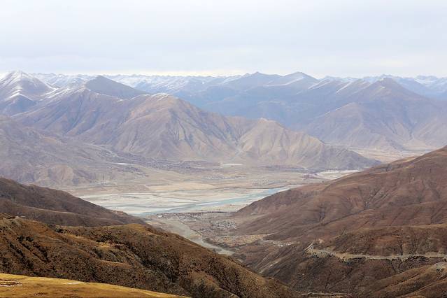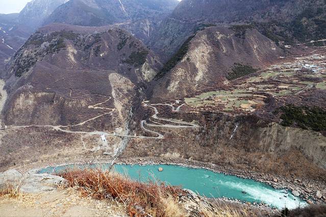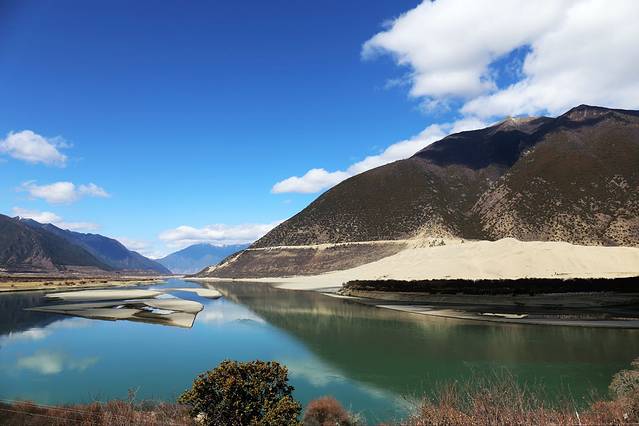从加查到桑日,沿着雅鲁藏布江一路向上,过了华能水电站后全部为砂石路,但没有深坑,只是车速被强制降下来。70多公里用时大约2.5小时,途中还看到几只猕猴,甚是可爱!