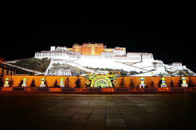 酒店窗外布达拉宫整夜灯火通明!只有大年夜才是通宵的!
