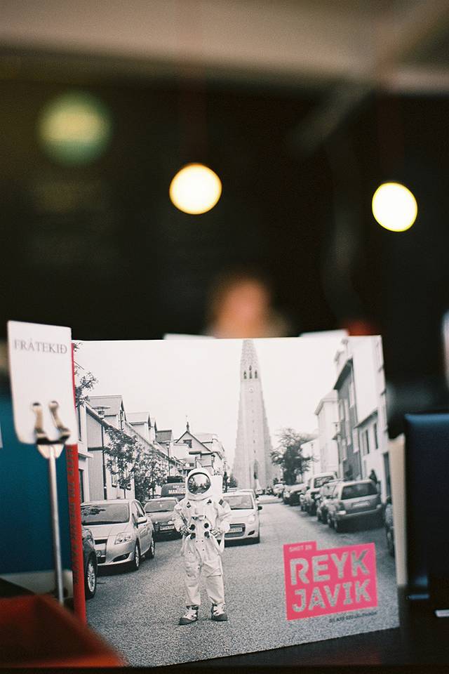 而在大教堂前面的一个胶片商店里,我们见到了这么一张有意思的相片——一个太空归来的‘外星人’降落在了雷克雅未克!