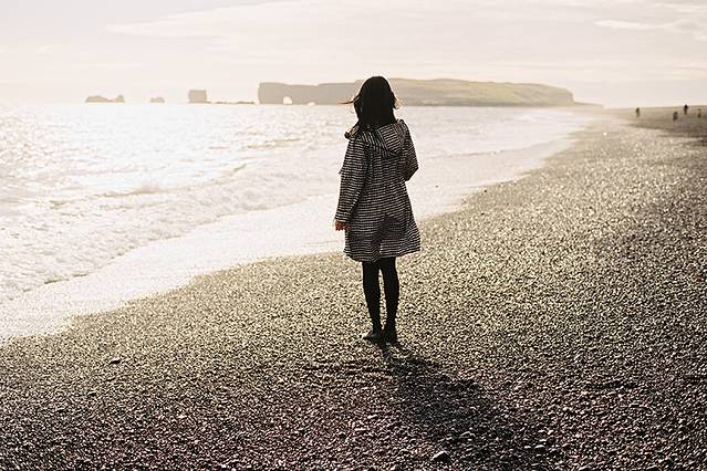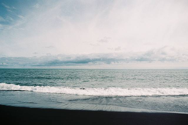 我慢慢地走上黑沙滩,遥望着远方的黄金海面,即使脚步在砂石上留下些许痕迹,不停息的海浪也会最终将它抚平。