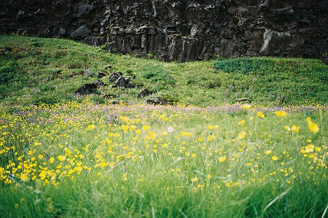 行驶到临近辛格维利尔国家公园的地方,突然遇到了这一片灿烂开放的黄花地。