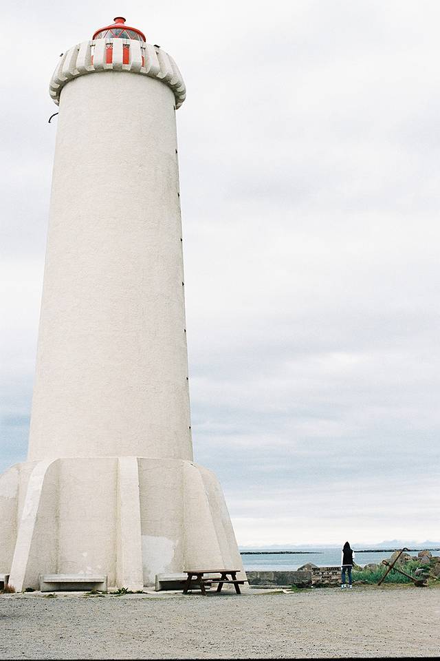 Akranes最有趣的地方莫过于一大一小的两个灯塔了,这两个灯塔是世界上最别致的灯塔之一,如果你不清楚一个灯塔能有多高,那就来来看看我站在灯塔下的场面吧!