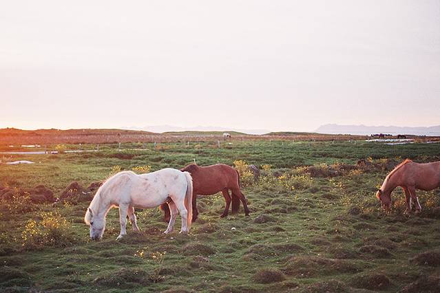 而这群在夕阳下奔跑的冰岛马也休憩在了公路不远的草原上,长短不协调的脖子和脚有点呆萌气质,估摸着马背刚刚1米出头,看起来很好欺负啊。