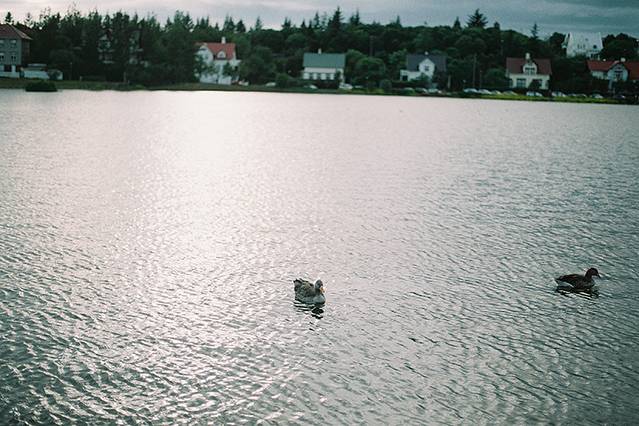 托宁湖可以说是雷市甚至是冰岛最出名的一个湖了,这里最鲜明的特点就是无论冬夏都栖息在湖面的野鸭子们和湖畔那些重要的雷市建筑。漫步在湖畔时,这个冰岛小姑娘正拿着面包喂鸭子,这个画面让我门又停留了许久。