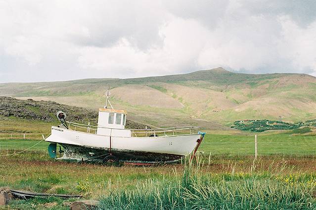 在公路一旁的草地上,有一艘废弃的小渔船,它的底部都已经生满了铁锈,孤零零地躺在那里,我想主人应该也遗弃了跟船儿一起梦想的远方吧。
