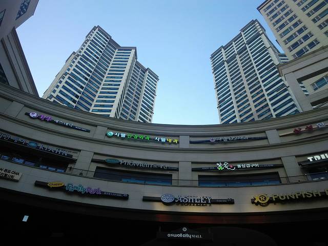 饿了,去吃好吃的칼국수面条吧。很奇特的是,我们绕出商场,又进到这个商场的另一个入口,那就在里面找吃的吧。原来最顶层有吃的。快看,店的格调也很带感的。