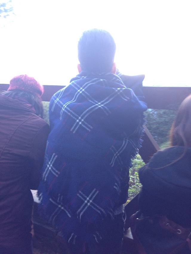 这个时间去阿里山看日出,一定得带羽绒服。我是羽绒服,冬天厚的打底裤+牛仔裤,围巾完全不冷。多多穿的线衫和棉衣冻坏了,我最后还把围巾给他了。我带了热水袋,日出看台(祝山站)有灌热水的地方。下山的时候灌了热水袋给大家暖手(我还是很机智的,哈哈)。