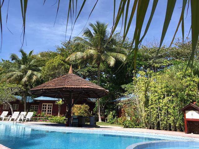 和之前说的一样这里有居民生活,水比较脏,鱼还挺多的,有小鱼风暴!早上退了房在大厅等车接我们去码头,然后坐船去马布岛,我们住的是木屋,度假村环境还不错 有一个泳池 还有散步的大蜥蜴!仙本那到处都要喵星人!吃过午饭后回房间收拾东西,然后去码头浮潜!