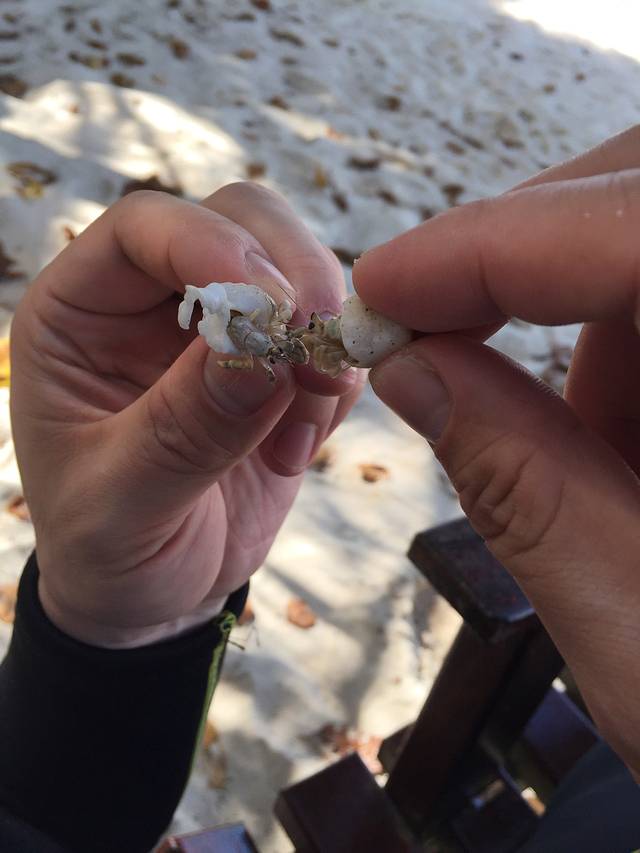 逮了几只小寄居蟹让它们赛跑还挺好玩的!