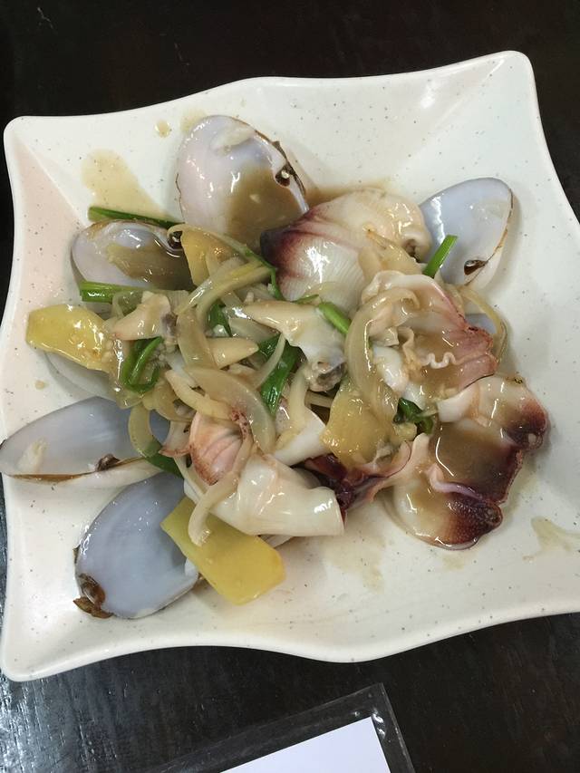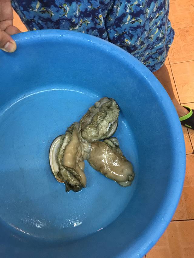 天旺海鲜 (龙虾0.3*140 虎斑0.6*50 象拔蚌0.4*45 鲍鱼三只 10+10加工费 铁板牛肉 菠萝炒饭 芒果冰沙*2)155.5