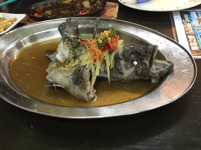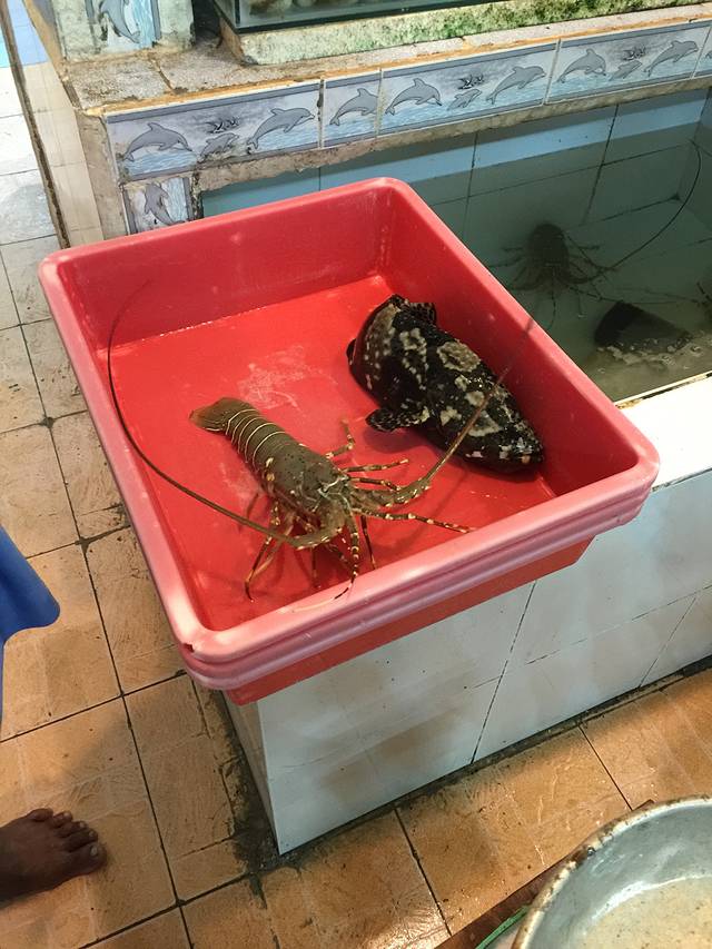 晚饭终于吃了我一直渴望的龙虾和鱼~可惜没有石斑了,要了一条老虎斑…