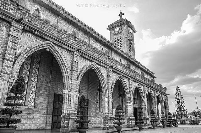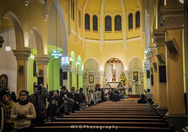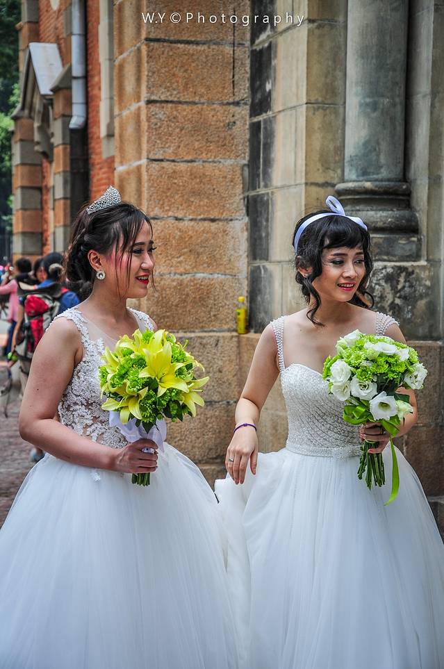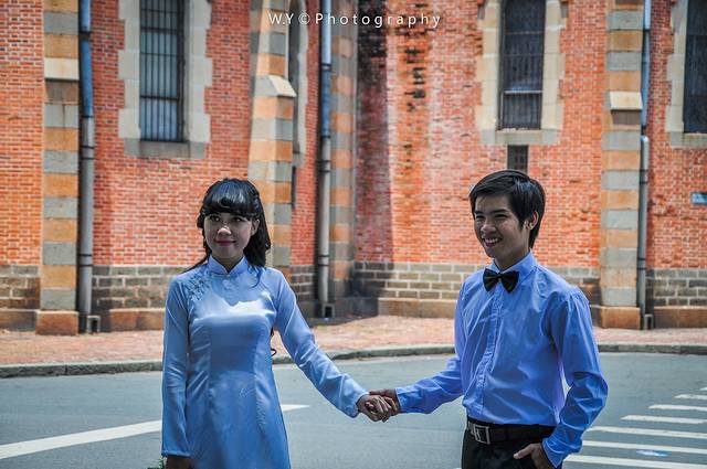好多人在教堂 邮局附近拍写真 拍婚纱照啊