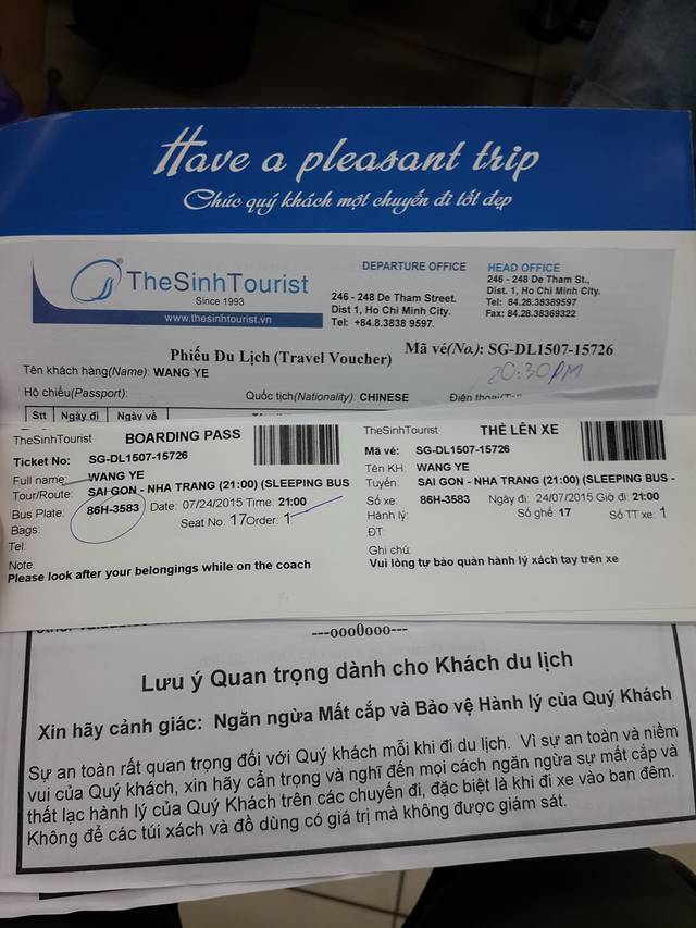 9:00pm 开 249000VND/人 sleeping bus 就在新咖啡门口上车,先定票,给行李牌,再在另一个柜台付钱,再提前20分钟来check in 换车票。不止中国人 欧美人 本地人都会坐新咖啡,哪个方便 选哪个。