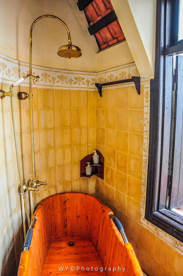 推开窗,可以看见山景的厕所,木桶浴缸!