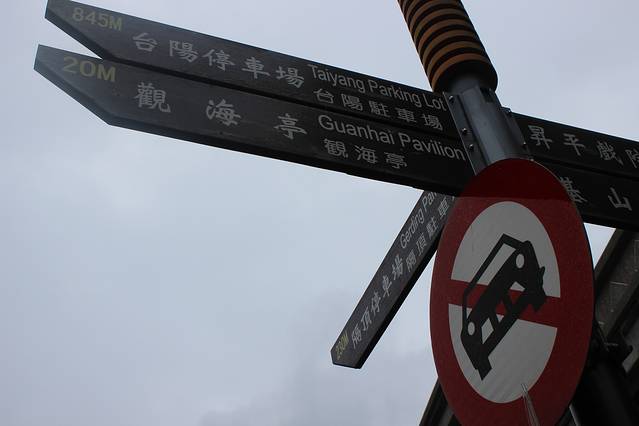 第二步下火车后看着指示牌,金瓜石,九份的路线,出了火车站看到一条大马路,往左走,看到很多人在排队等公交车,那就是去九份的公交站点。
