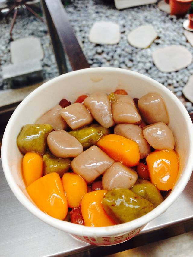 来九份,必吃芋圆,赖阿婆芋圆和阿柑姨芋圆,很多推荐,个人只吃了阿柑姨,排队的人是相当的多哇,不是啦,直接上图。