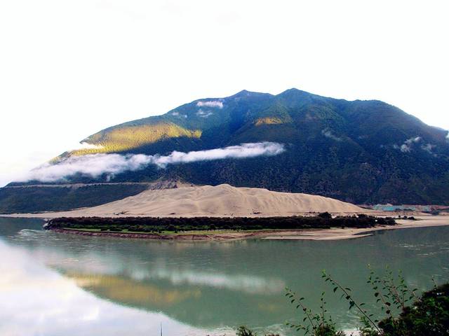 位于米林县丹娘乡境内,是雅江最大的江心沙丘岛。雅鲁藏布江大峡谷中经常刮大风,扬起的沙子堆积成小山状,使连绵的沙丘构成了沙海。远远望去米黄色沙丘如同一个捏拢的巨大佛掌,沙丘背靠葱茏苍翠的青山,沙丘前便是淡蓝色的雅鲁藏布江,沙丘倒影如同两个佛掌在合十祈祷