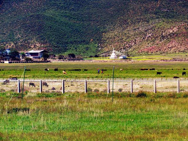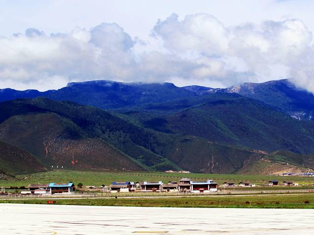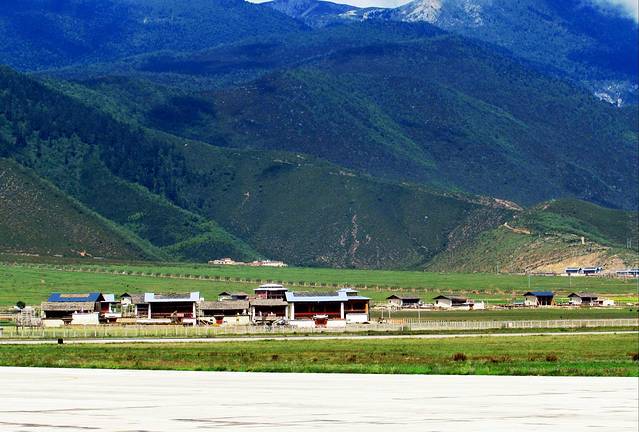 机场停机坪旁边就是一片小草甸,有一些藏居