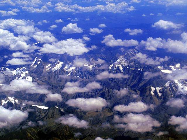 飞机上见到的雪峰,连绵不绝,快到拉萨了...