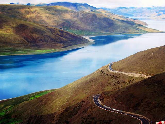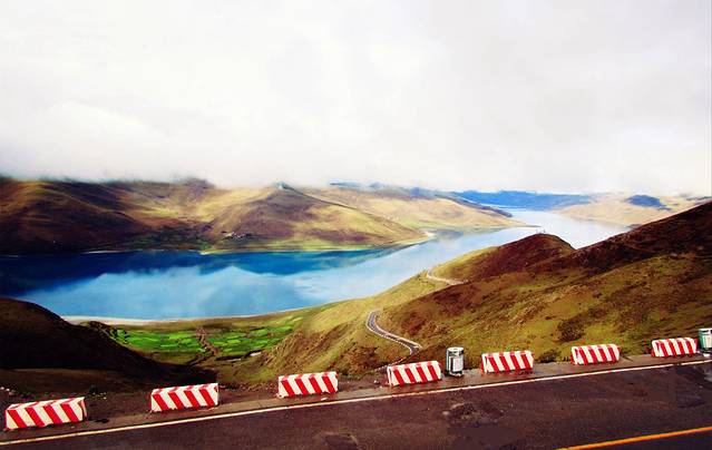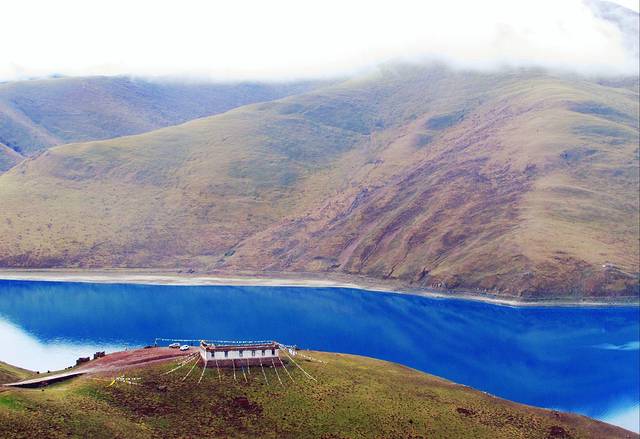 羊湖的湖水被称为是最美的湖水,天气好的时候看得更清楚,湛蓝湛蓝的...今年还正好是羊年哦^_^ 拉萨街头打的旅游广告招牌说:羊年转羊湖!实际上是转不完的啦,湖边走走就已经要很久很久了。像这些圣湖的面积都是很大的,如果你够虔诚的话就去转吧,转山又转水。