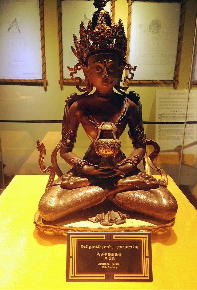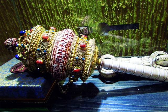 商店里昂贵的鎏金转经筒,镶嵌着藏族八宝