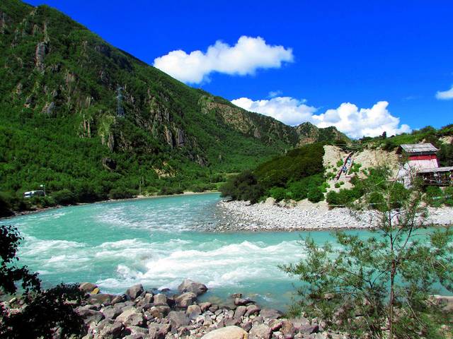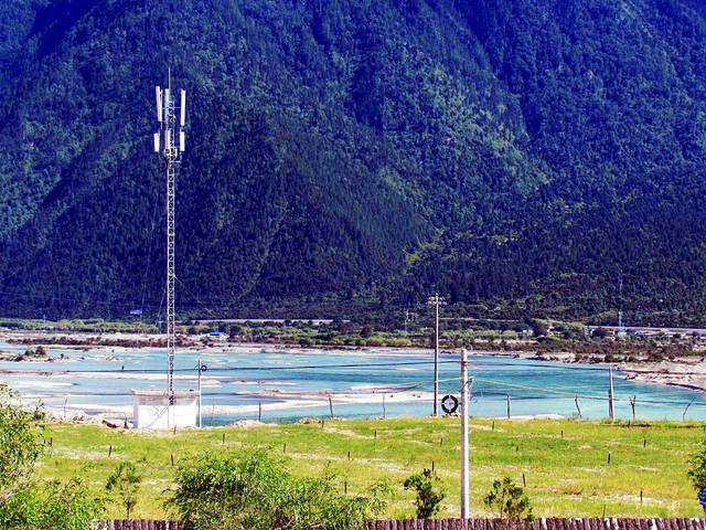 远眺尼洋阁前方碧绿清澈的尼洋河水,非常漂亮,可惜隔着很远的路...还是自驾游最方便哦