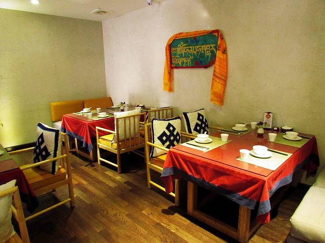 拉萨有很多藏餐馆,一般都是藏民吃喝的地方,游客不多,有的人适应不了青稞和奶茶的味道,青稞酒和奶茶算是在西藏旅游经常会碰到的食物了,藏食其实没有什么真正的烹调,布达拉宫西墙有一家雪神宫藏餐馆,应该算是拉萨最高档的藏餐馆之一了,藏餐挺简单的无非也就是甜茶啊牛肉包子啊炸羊排等等这些。