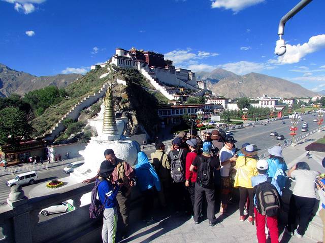 这个平台就在布宫斜对面,很好找,搭2路公交车在旅游局附近下车就行了,再走一小段路就到了,每天这里都会有很多摄影爱好者等着拍布宫夜景,他们往往下午很早就过来埋位了...