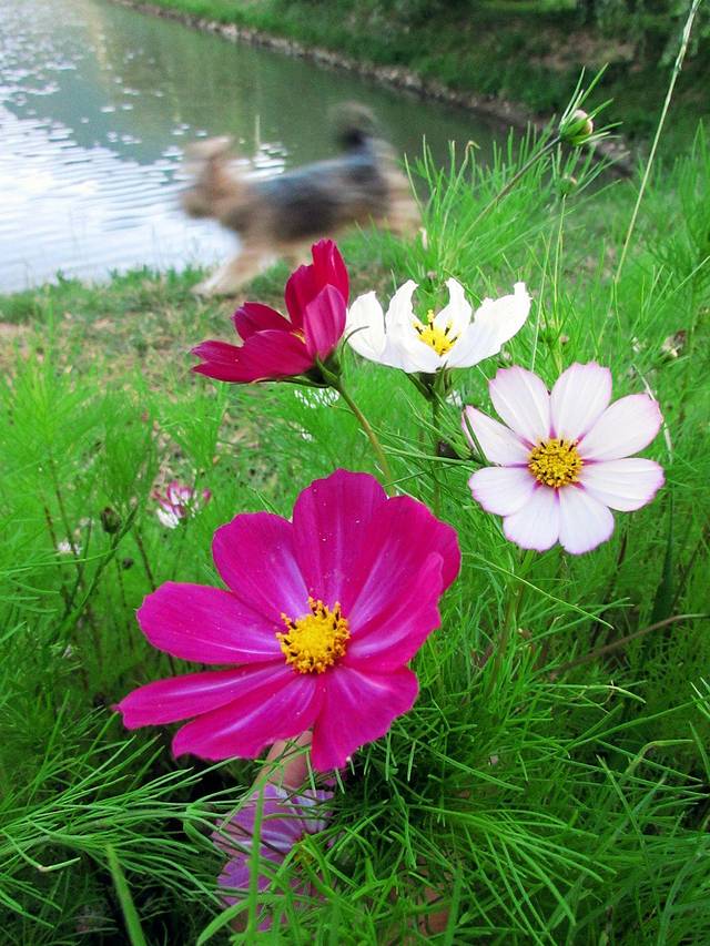 ^_^又见格桑花,云南也有很多,一只小狗跑过。镇上有很多流浪狗,也没有人会驱逐它们