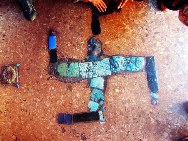 嵌在地上的绿松石,很珍贵,大家只能摸摸啦