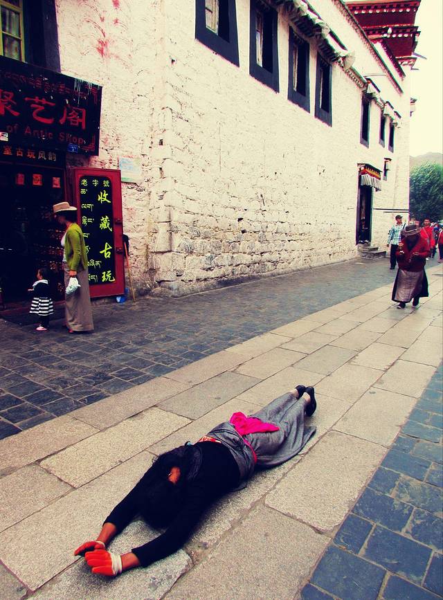 八廓街街道上磕长头的藏民,前仆后继,不停止