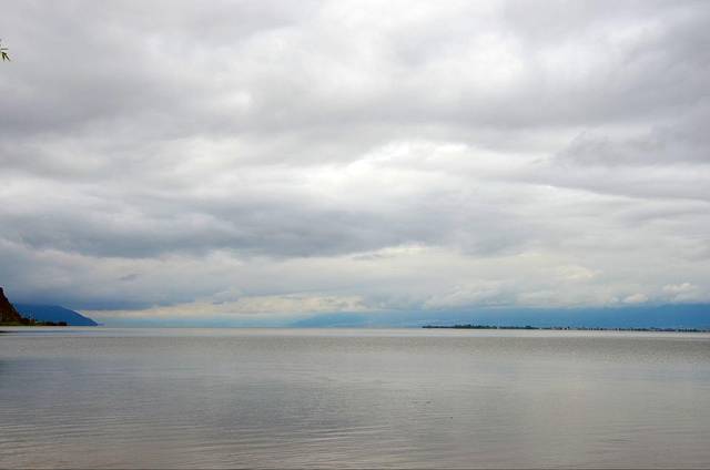 陪朗哥和小鸭买了防寒的衣服,租了车启程去双廊。环行洱海,印象中的洱海碧水青山一望无际,可以看日出日落,我怀着赤诚的心走到这儿,结果大片大片的水草毁掉了我的想象。司机是一个白族的大姐,她说,这儿只是浅水区,你们在这儿可以看到对岸的双廊和后面的苍山。