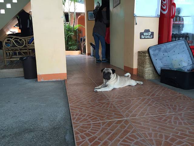 潜店的明星狗——Fugly,有自己的Facebook,每天在潜店打打酱油,卖卖萌,无数相机都对着它狂拍,哈哈~~
