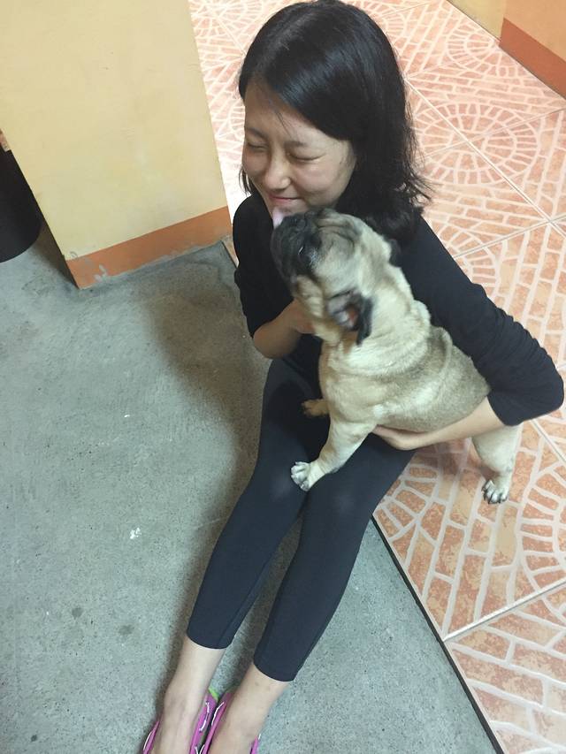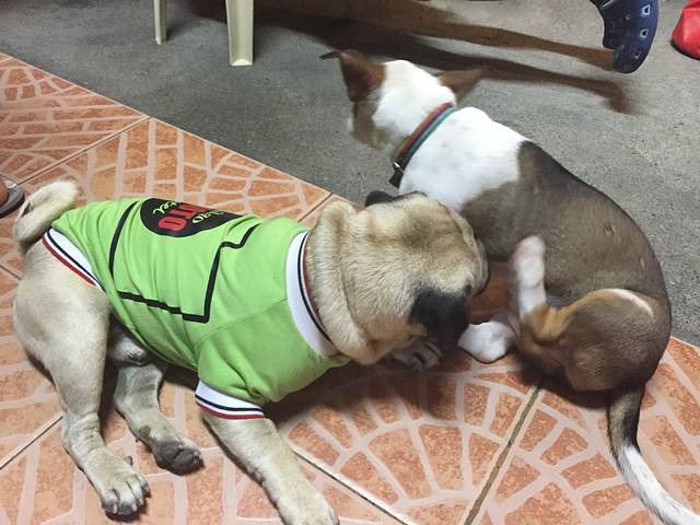 潜店Mugly的宝宝,Mugly生了7只小狗狗,这是老三,叫星期三。哈哈~~