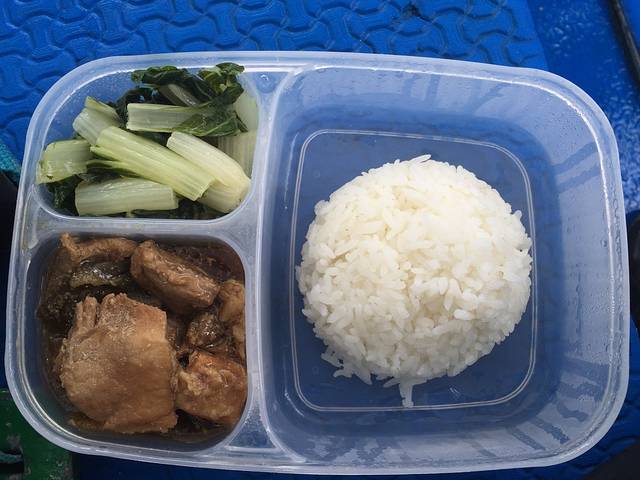 午饭在船上吃,上图是第一天的饭,排骨超级好吃啊,拌着米饭好香的~~第二天吃的是金枪鱼的意面,因为我本人不爱吃鱼,所以对金枪鱼的pasta不感冒。。。但是炸鸡腿那是太好吃了~~第三天是汉堡,我吃了两个。