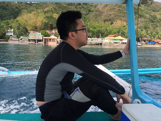 虽说anilao能无限岸潜,但是一天三潜已经很累了。船每次开到潜点大约30-60min,我们这几次潜点基本在Secret Bay、Coconut、Twin Rock、Dead Palm等等。要说哪个好,好像都差不多,小东西很多就看你看不看得见了。Twin Rock和Dead Palm珊瑚和小鱼群比较多。那几天潜水几乎所有潜点深度都在15-20m左右,一瓶气200bar的气能用50min,上岸后基本还有50bar的气。摄影组的三个人居然基本每次都能在1hour以上,跟他们趴着拍照不动有关系。
