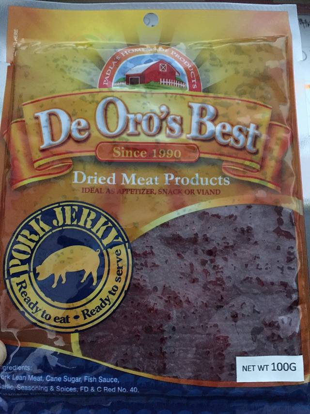 去超市买了几包妈妈爱吃的坚果 买了大约十包猪肉脯,小包的Piso80多一包,大包的Piso100多一包。味道有点咸,蒜味挺弄的,不像国内的猪肉脯那么干。