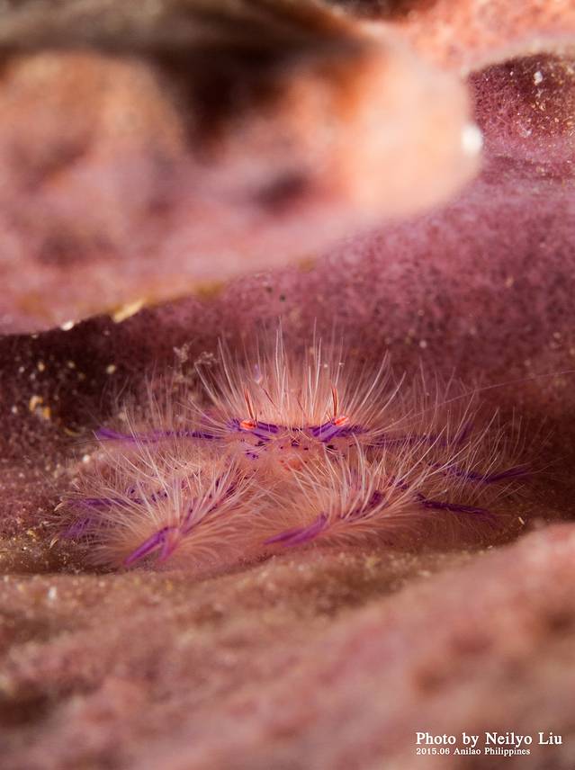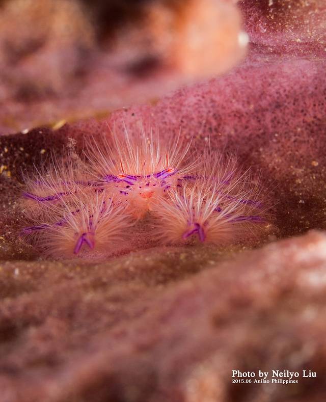 这是畅姐这次潜水比较满意的作品,粉红猩猩,是一种比较罕见的虾。。。我开始以为是螃蟹。大概1-2cm左右。