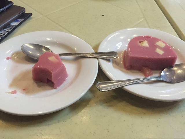 潜店的甜点真是绝了。。。后悔第一天没有吃。。。第三天的紫色奶酪菠萝布丁超级好吃,甜度刚好,我足足吃了两份。。。