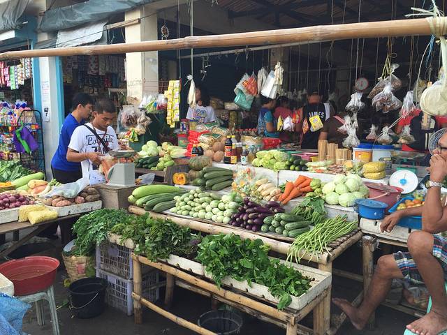 因为潜店不提供水果,当然看攻略说如果想吃水果可以给钱让潜店的服务员帮忙买,但是自己动手丰衣足食嘛~~从潜店出门左手边一直走,路过一个小教堂、一个篮球场、过一座桥大约5min就到镇上大路。有沿街商店、菜市场、面包店、肉店等等。