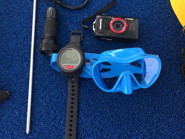 上次在薄荷的Mask太大,回家我家老头给我买的cressi儿童款的Mask,这次就没有问题了。第一天三潜因为没有相机下去只能帮着老刘“翻垃圾”找小东西,我的眼力还好,找找2cm以上海兔什么的还是没问题的,再小像小米一样的东西就要靠DM了。